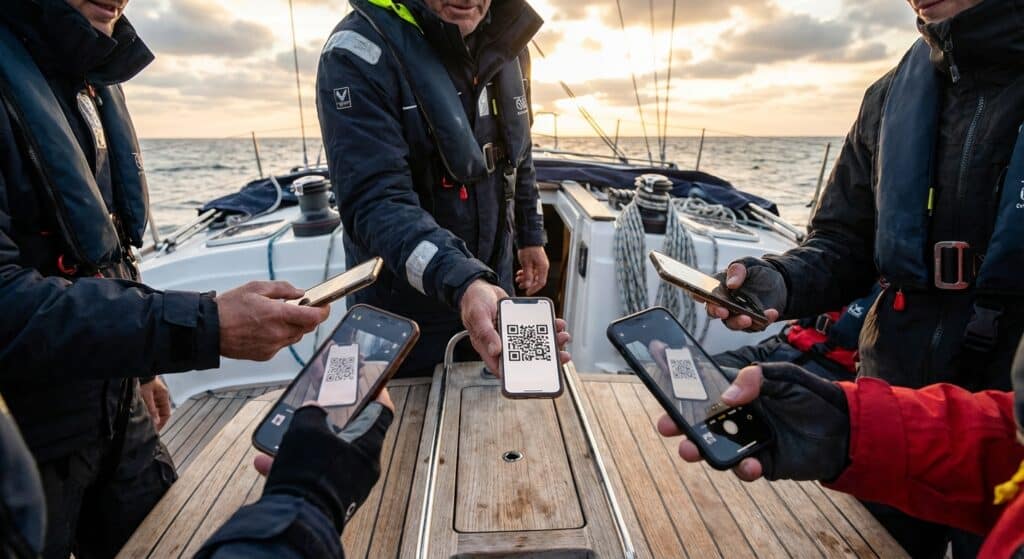 Załoga skanuje go swoimi telefonami i natychmiast otrzymuje kompletny plan rejsu – bez przepisywania danych.