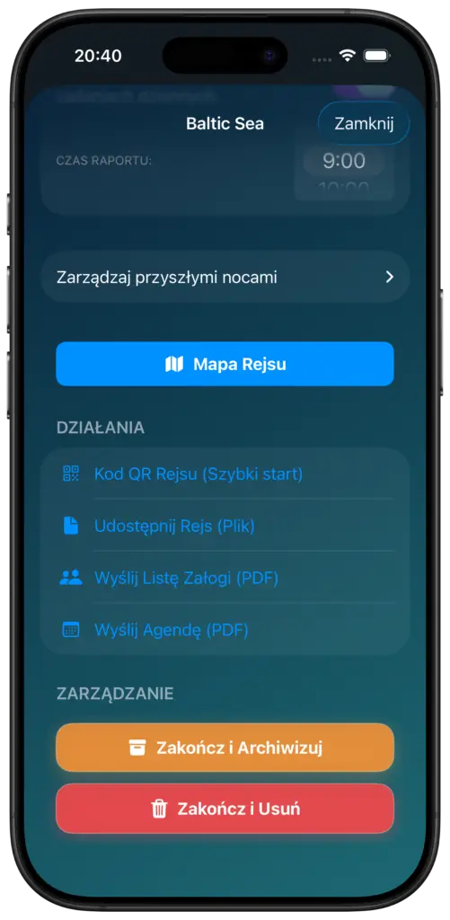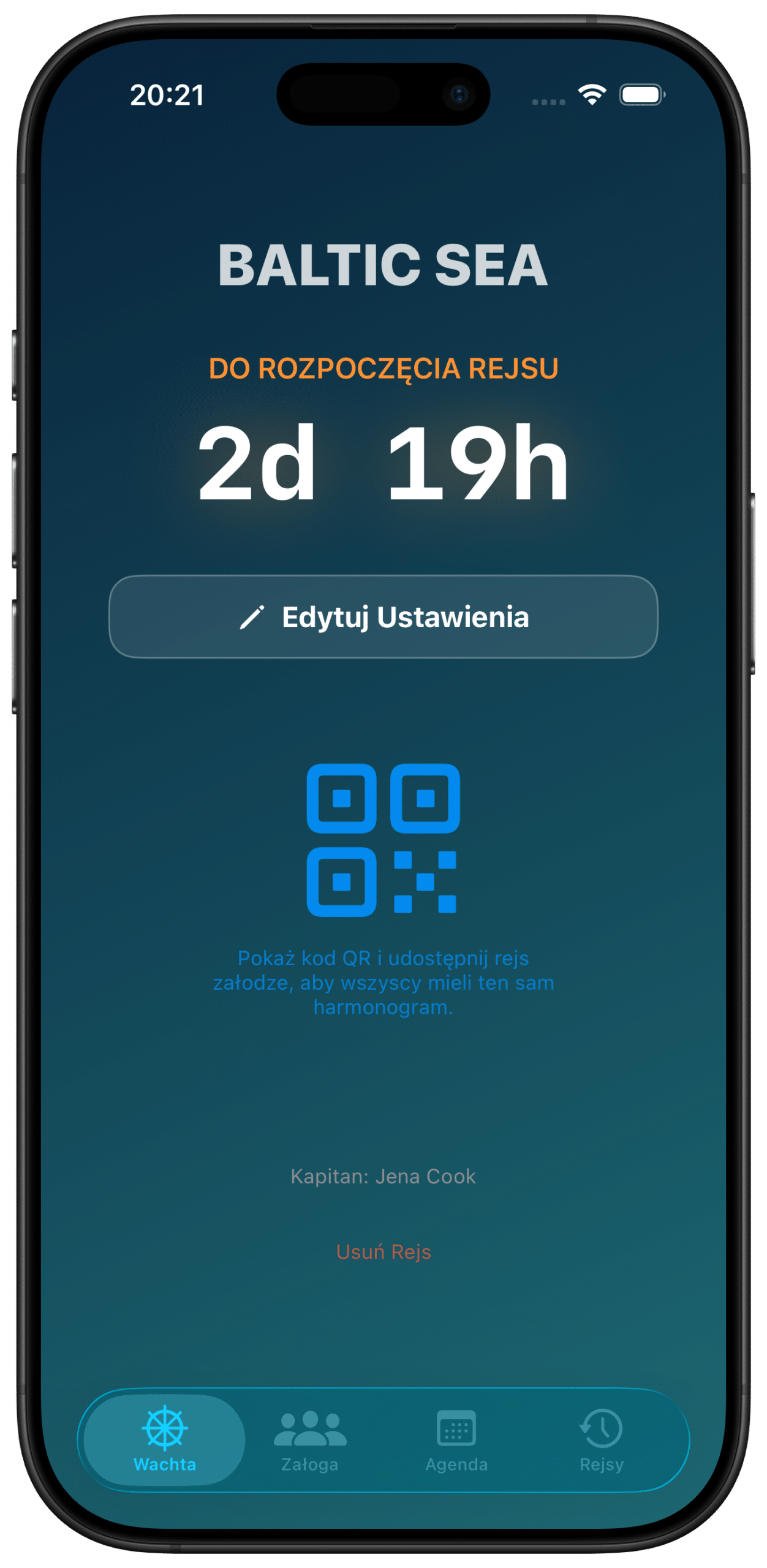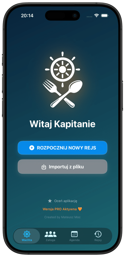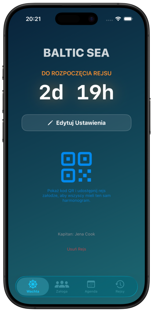 Jeśli jednak chcesz dzielić się rejsami, synchronizować aktywny rejs z załogą za pomocą kodu QR, precyzyjnie określać godziny wacht lub zarządzać każdą nocą osobno, rozważ zakup wersji PRO.